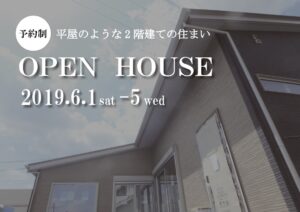 【終了しました】2019年6月1日(土)~5日(水)予約制「平屋のような2階建ての住まい完成見学会」開催