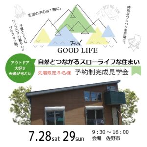 【終了しました】7月28日(土)29日(日) 限定8組「自然とつながるスローライフな住まい」完全予約制 完成見学会開催!